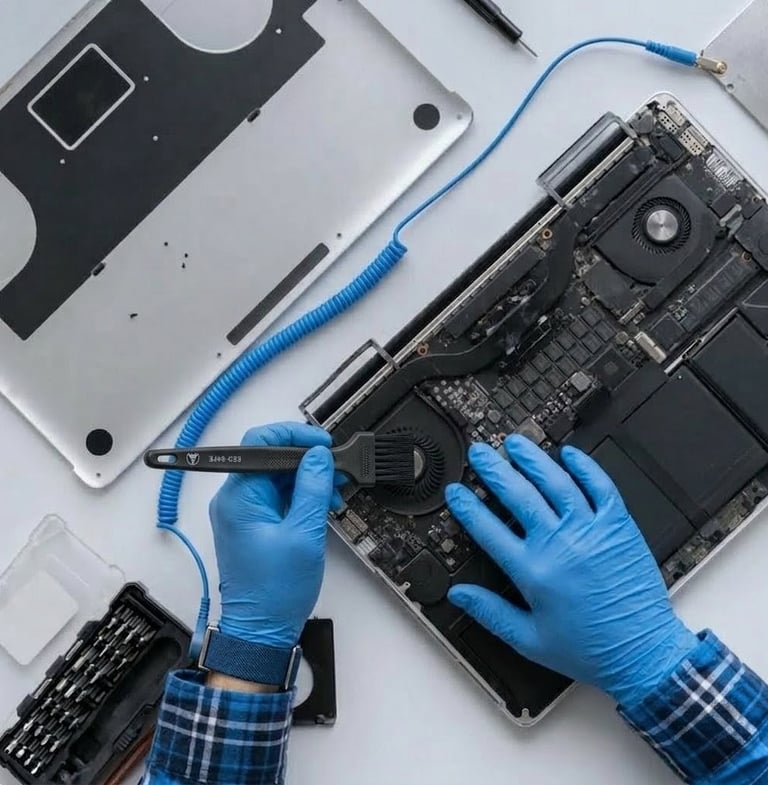 Pembersihan bagian dalam MacBook dari debu dan meliputi penggantian thermal paste agar MacBook Anda kembali kembali optimal.