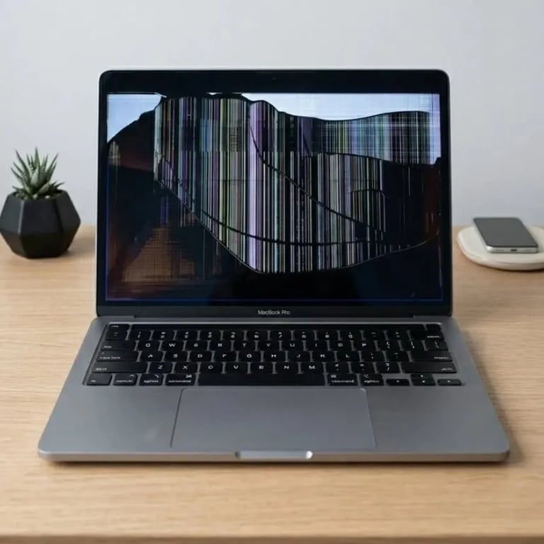Penggantian layar MacBook untuk mengatasi layar pecah, bergaris, atau mati.
