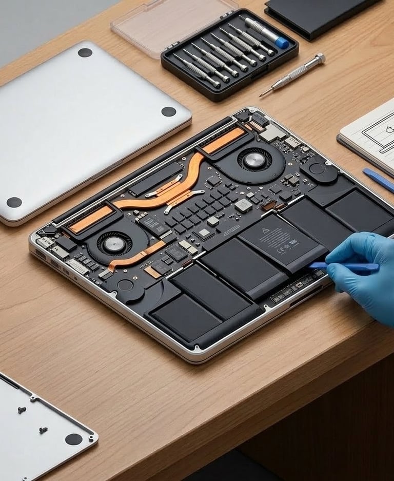 Menyediakan berbagai layanan servis MacBook seperti ganti layar, ganti baterai, upgrade SSD, dan maintenance rutin dengan pengerjaan cepat, transparan, dan teknisi berpengalaman.